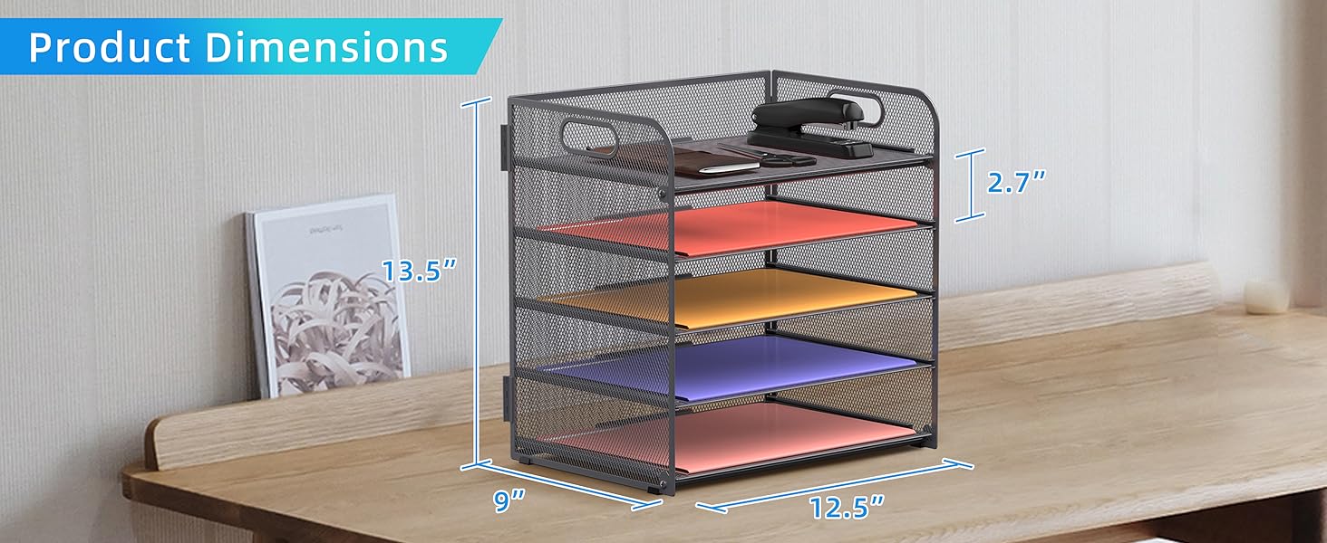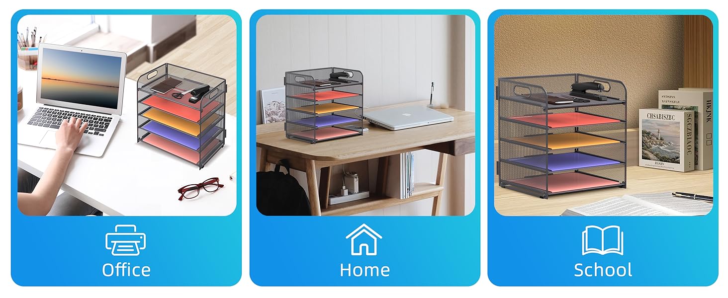This desk organizer has five layers and a large capacity. And this paper organizer storage is great for holding Letters, A4 size papers, books, bills, folders, binders, stationary and notebooks, and schoolwork. In this way your desktop can save more usable space.