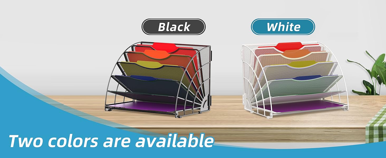 This fan-shaped desk organization has two colors to choose from: black and white. Both colors are very good-looking and very suitable for placing on the desktop. Moreover, there are two sets of black paper sorter organizer, which are very preferential.