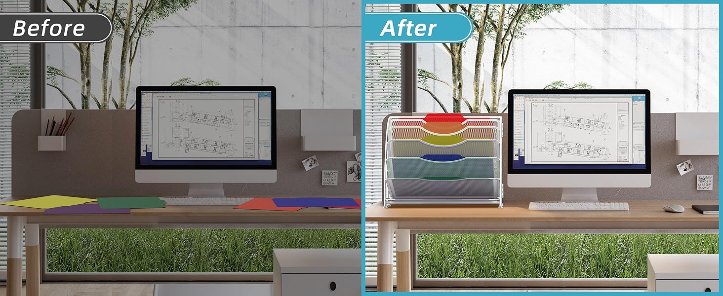 Say goodbye to cluttered desktops. Have many documents, books or magazines, etc, so cluttered? With this fan-shaped file desk organizer, documents, books and other items will be stored in an orderly manner, the desktop will be very neat, and there will be no trouble finding things again.