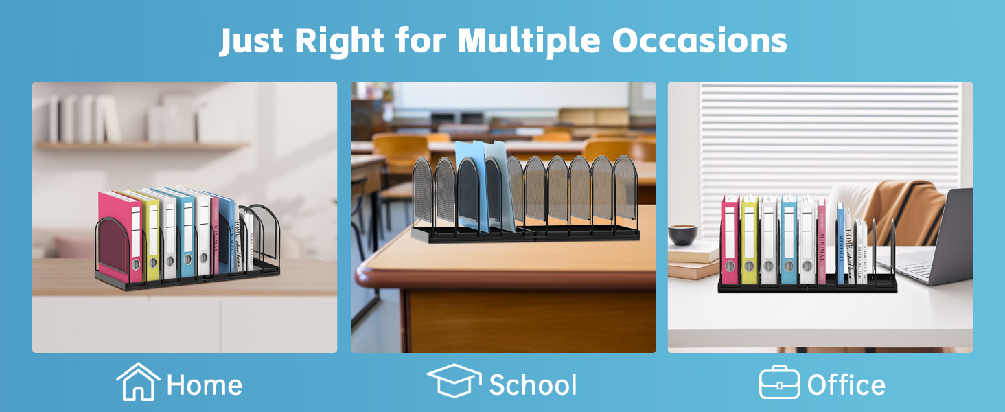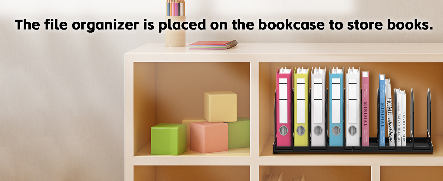 It'sa practical desk organizer for home, bookcases, offices, waiting rooms and lounges.The file organizeralso be placed in a bookcase to store books